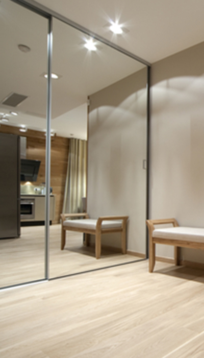 Examples & Ideas Below we have outlined a few popular mirror ideas. Custom Mirrored Walls Mirrored walls can improve your home in a variety of ways. Formal dining rooms will become an elegant entertainment room when adding one wall with a floor to ceiling mirrored wall. Exercise rooms are another possibility for a floor to ceiling mirrored wall. Final measured dimensions will determine how many mirrored panels will be required for the wall. Mirrored Wardrobe Doors Enhance your bedroom with mirrored closet doors. Just this one addition to your master bedroom will make you feel like you are staying at a Five Star resort vacation home. Oval Mirrors Custom oval mirrors, any size, choice of polished edge or beveled edge. Exercise Rooms Mirror entire exercise room or one wall. Enhance your private space for exercise and relaxation.