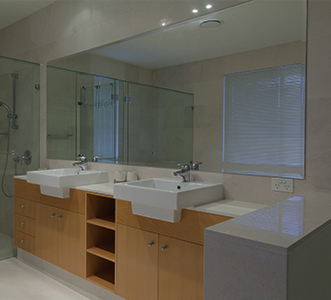 Custom cut mirrors in any shape Expert Mirror installation Beveled edges available Thicknesses from 1/16” to 1/4” available Safety backing Custom framing for any mirror Holes for outlets and lights